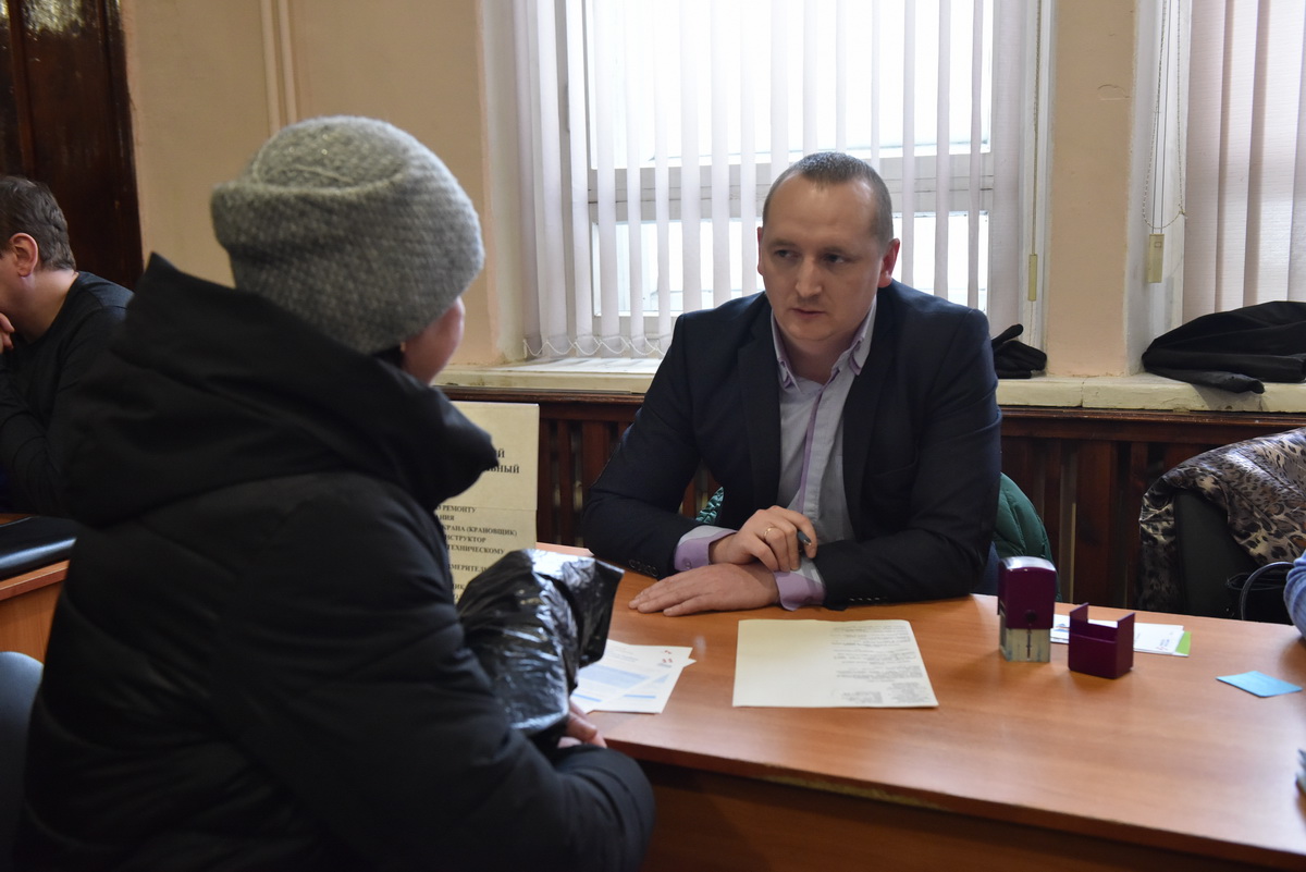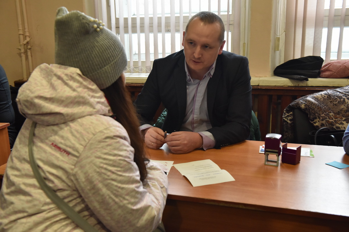 Начальник сектора Максим Ермакович и ведущий специалист отдела № 208 Татьяна Калмыкова подробно рассказали соискателям об условиях труда, размере заработной платы и социальных гарантиях, предоставляемых предприятием.