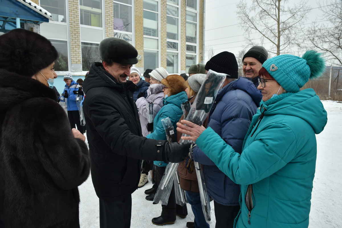 Сегодня у физкультурно-оздоровительного центра «АО «Златмаш» ветеранам предприятия был вручен спортивный инвентарь для занятий скандинавской ходьбой